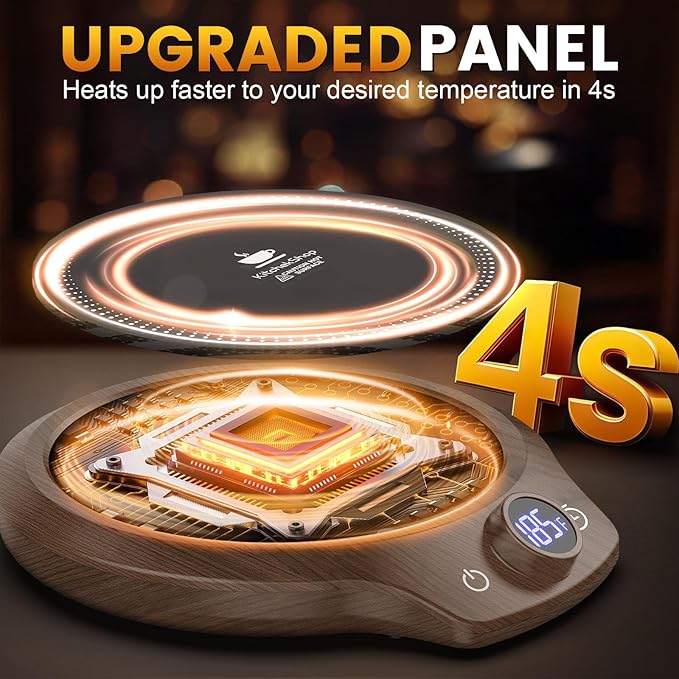 - 【Smart Gravity Sensor Technology】Our coffee mug heater adopts advanced intelligent gravity sensor technology to automatically detect the placement status of the cup. When the cup is picked up, the mug warmer will automatically pause; when the cup is put back, the coffee mug warmer will immediately resume heating. This effectively prevents dry burning and prolongs the service life of the device