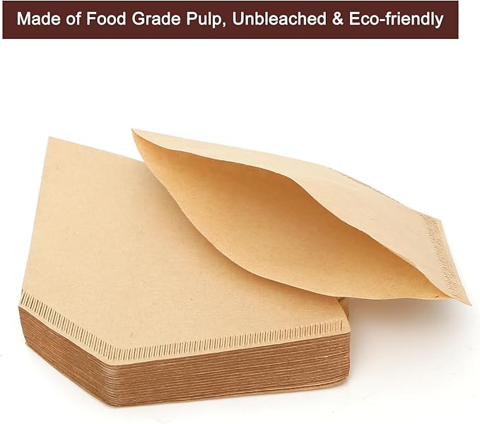 - Unbleached Disposable Coffee Filter: Made of premium material, these unbleached coffee filters are your daily use. Size of coffee paper filter is:7.7in*4.3inch*4.7inch.Cleanup is effortless - just remove and toss the used filter, with no trays or baskets to wash