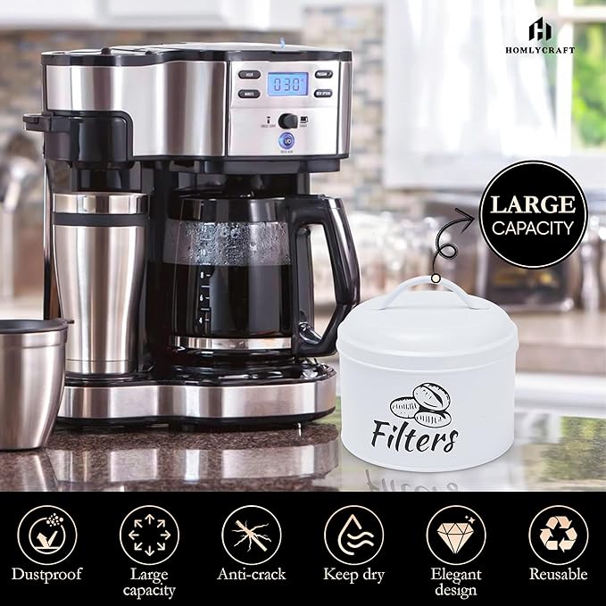 - ✅ Sleek Metal Lid for Dust Protection The silver-tone lid is designed to seal out moisture and dust, keeping your paper filters dry and fresh. Its durable handle allows easy access at any time of day.