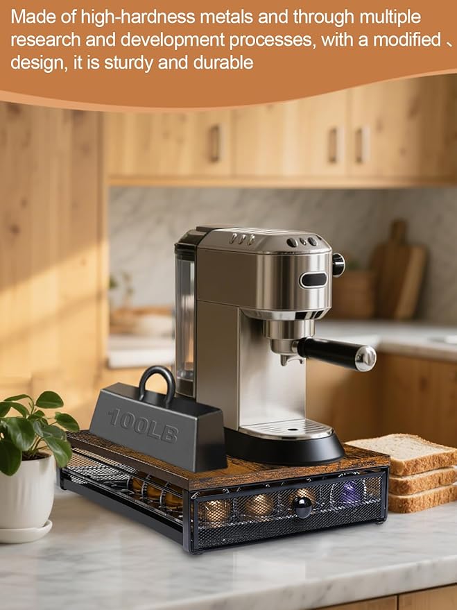 - Built to Last:This Nespresso Pods Holder is Made With a Tough 15×3mm Carbon Steel Frame and a 12mm Reinforced Panel, Supporting up to 100lbs (45kg). Handcrafted by Skilled Artisans Using Eco-friendly Materials, Each unit Undergoes 20% Stricter Quality Control than Machine Production to Ensure Durability for Years to Come.