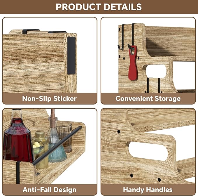 - Durable Wood Frame with Rustic Charm Crafted from premium wood, this liquor shelf brings vintage appeal and reliable support, Perfect for displaying spirits in a bar liquor shelf, whiskey bar, or alcohol cabinet for home