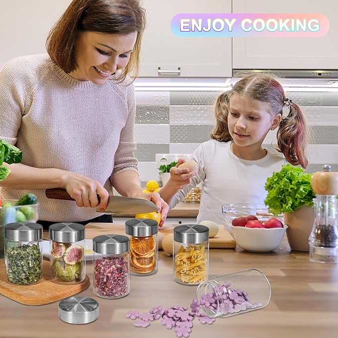 Glass Spice Jar Coffee Sugar Container Airtight Glass Jar Food Storage Canisters Bottle for Kitchen Seasoning Tea Herb Overnight Oats Bar Parfait Snacks (6 * 200ml(6.76oz))