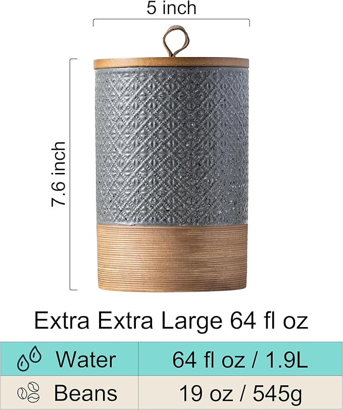 - Ultra-Tight Wooden Lid: The wooden lid with a strong rubber gasket creates an unbeatable airtight seal, keeping air, moisture, and odors far away from your coffee beans and ground coffee, locking in freshness for longer