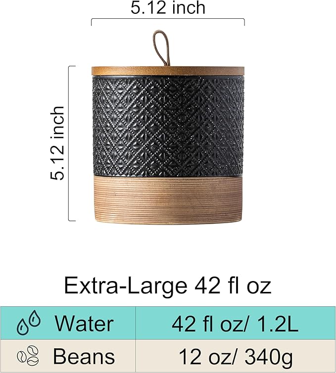 - Ultra-Airtight Wooden Lid: The wooden lid means business for freshness, with a tight gasket locking out air, moisture, and odors to keep beans crisp and grounds flavorful