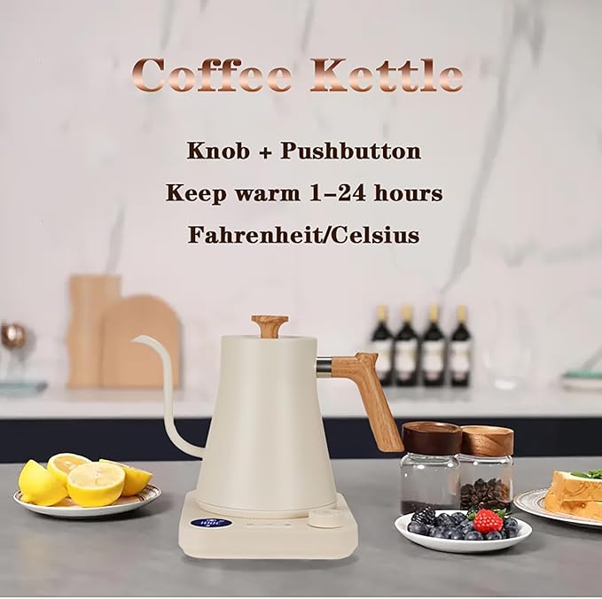 Gooseneck Electric Kettle,Electric Kettles, ±1℉ Temperature Control, Ultra-Quiet 304 Stainless Steel, for Coffee, Tea & Milk, Auto Boil Detection, 8 Safety Protections & Memory Function(white, 0.9L)