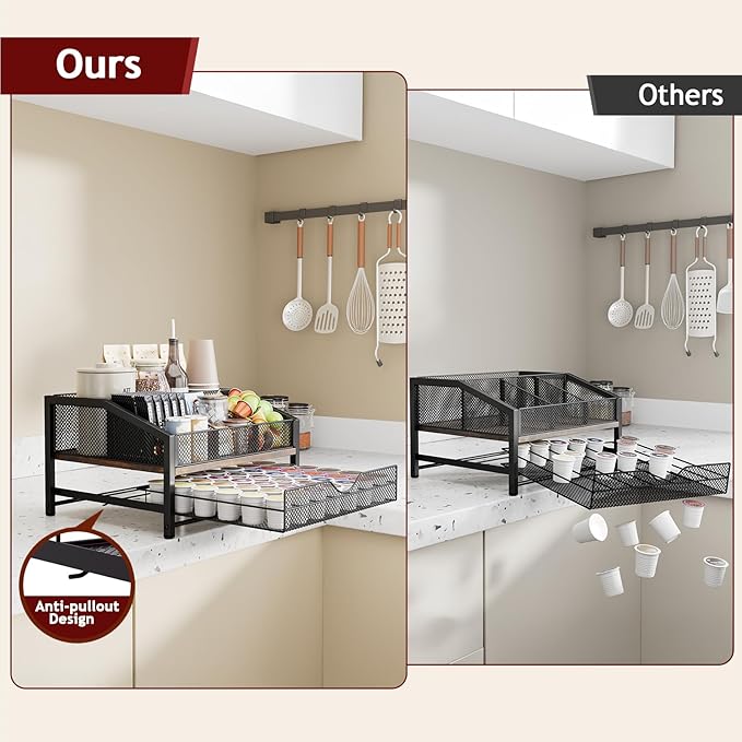 - [Designed to Fit into Your Life, Effortlessly] Whether you’re setting up a cozy home coffee bar, upgrading your office breakroom, or adding convenience to a hotel lobby, this coffee bar organizer for countertop blends in seamlessly. It keeps all your essentials within reach while saving precious space.