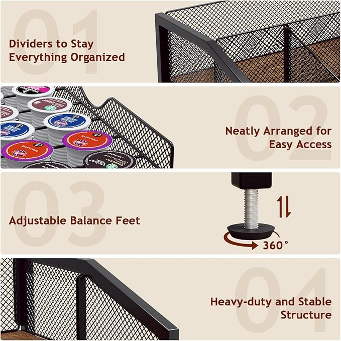 - [A Thoughtful Design for Effortless Mornings] Ever struggled to grab the last coffee pod or tea bag from the bottom of a cluttered drawer? This coffee organizer station making it easy to pick up every last piece—no more digging, no more hassle, just quick and easy access to your favorite brew.