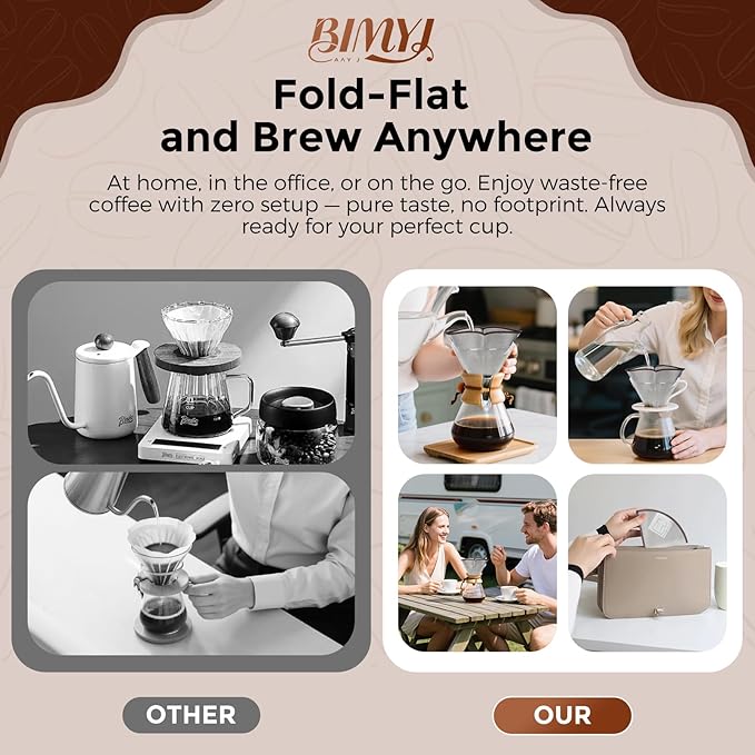 - Space-Saving Slim Design: Collapses to a flat 5.12-inch square (7.48-inch top diameter) for compact storage. Perfect for Chemex 8-cup carafes, V60 pour over setups, and most drip coffee makers.