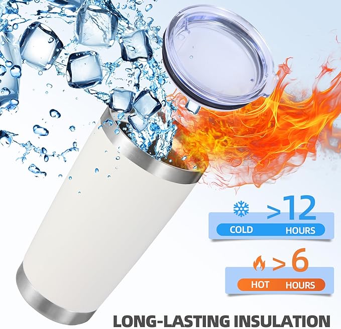 Volhoply 20oz Stainless Steel Tumbler with Lid and Straw Bulk 24 Pack,Double Wall Insulated Travel Iced Coffee Mug Fits Cup Holder,Powder Coated Cups for Hot/Cold Drinks,Christmas Gifts(White,24 Set)
