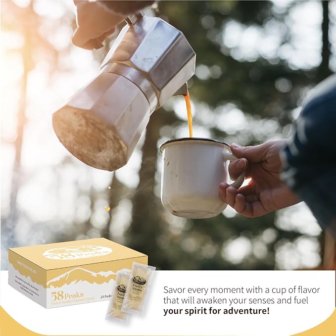 - The Flavor of the 58Peaks: Our convenient individual packets of coffee syrup flavors make it easy to bring the taste of the Rockies anywhere life takes you! Savor every moment with a cup of flavor that will awaken your senses and fuel your spirit for adventure.