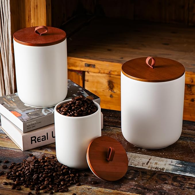 - Durable & Sustainable Materials – Made from high-quality ceramic with bamboo lids, these canisters are built to last. The bamboo lids are sourced responsibly, offering a natural and stylish solution for your kitchen storage needs.