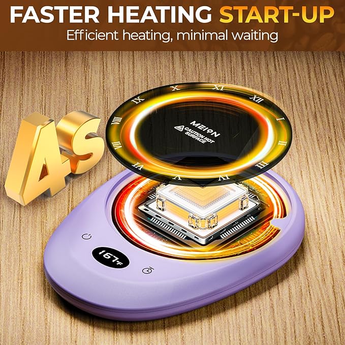 - 【Customizable Mug Warmer】MEION mug warmer offers 4 customizable heat settings (131°F, 145°F, 167°F, and 185°F) and a 1–12 Hour Timer with auto shut-off. It is set to automatically turn off after 8 hours by default. Enjoy a warm beverage whenever you like. Note: With a lid on, drinks heat up faster.
