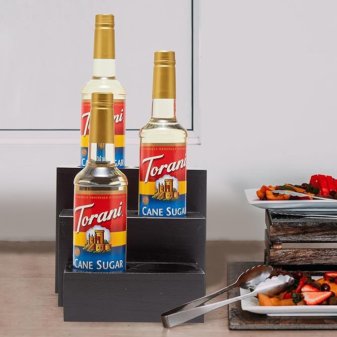 - Large Capacity: The size of the syrup rack is 15.5"(l)*13.4"(w)*9.5"(h).It organizes all flavors of syrup neatly display for convenient viewing and easy access, can hold up to 6 syrup bottles (750ml),4 standard syrup bottles on each tier