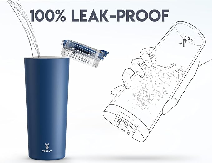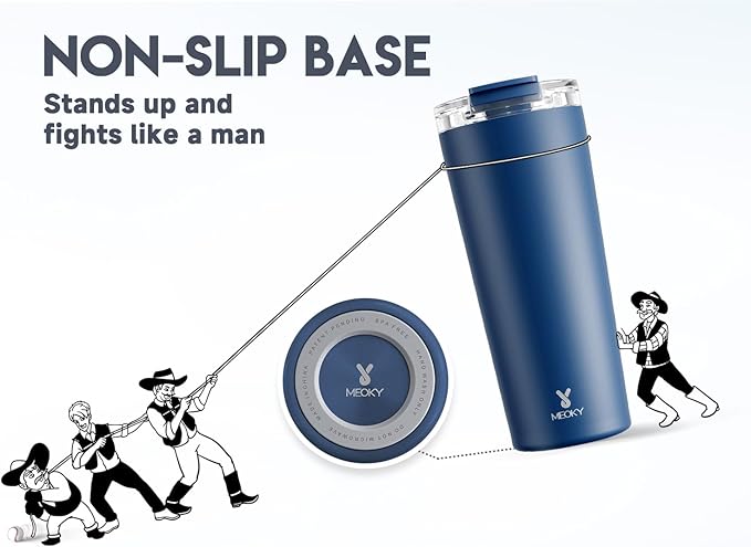 - NON-SLIP BASE. With non-slip base, Meoky travel coffee tumbler stands up and fights like a man.
