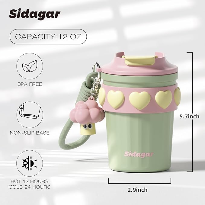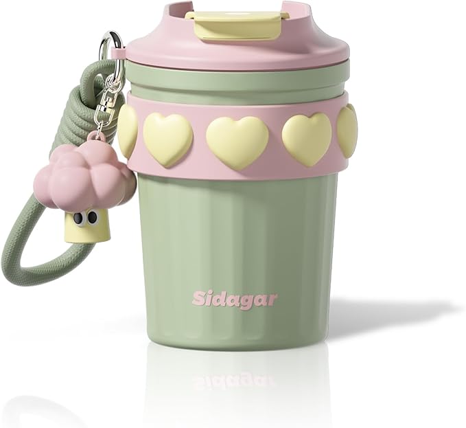 12 oz Travel Coffee Mug Spill Proof Leak Proof, Stainless Steel Thermal Coffee Cup with Lid, Resuable Cup for Hot and Cold, Portable Tumbler for Women, Green