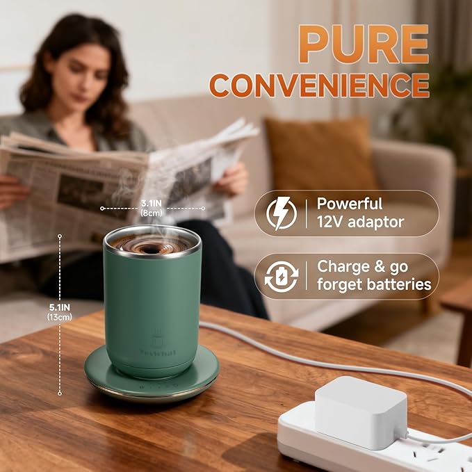 - Smart Heated Coffee Mug: Three precise heat levels maintain your drink’s perfect temperature — from morning coffee to evening tea.