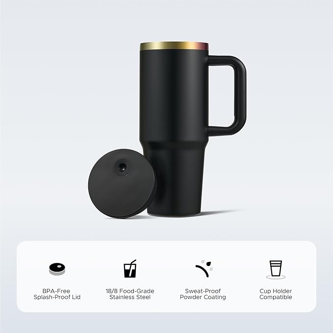 - Effortless On-the-Go Handling: With added handles, our stainless steel travel mugs are easy to hold and carry wherever you go. Juggle your keys and phone with ease while securely holding your tumbler on your way to a morning yoga class