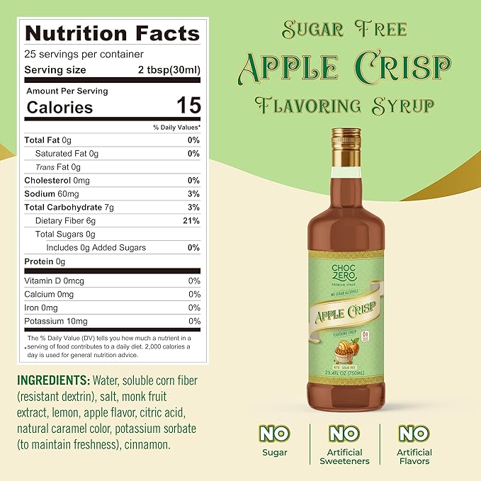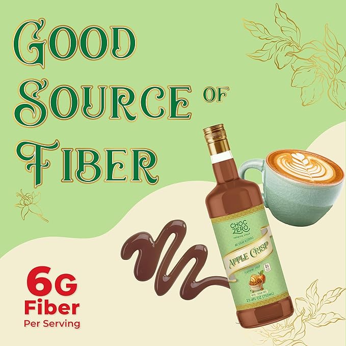 ChocZero Apple Crisp Flavoring Syrup, Sugar Free, Apple Crisp Flavor, Keto Friendly, Gluten Free, Vegan, Prebiotic Fiber, Concentrated Coffee & Beverage Syrup – 25.4 Fluid Ounces